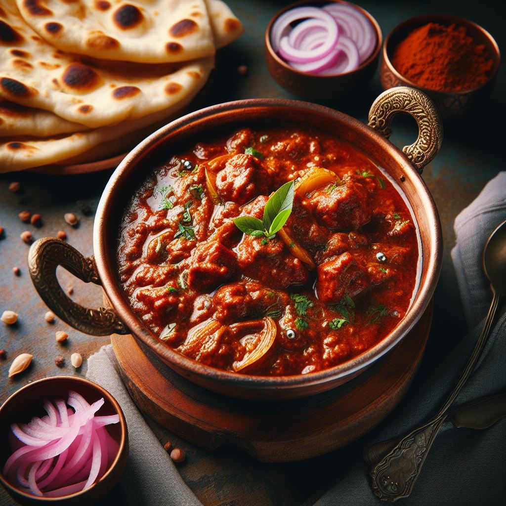 Embark on a culinary journey with our Bhuna, a dish that epitomizes the art of Indian cooking. Bhuna is not just a recipe; it’s a cooking technique where spices are fried in hot oil until they form a paste, which then serves as the foundation for a curry that’s both aromatic and deeply flavorful1.